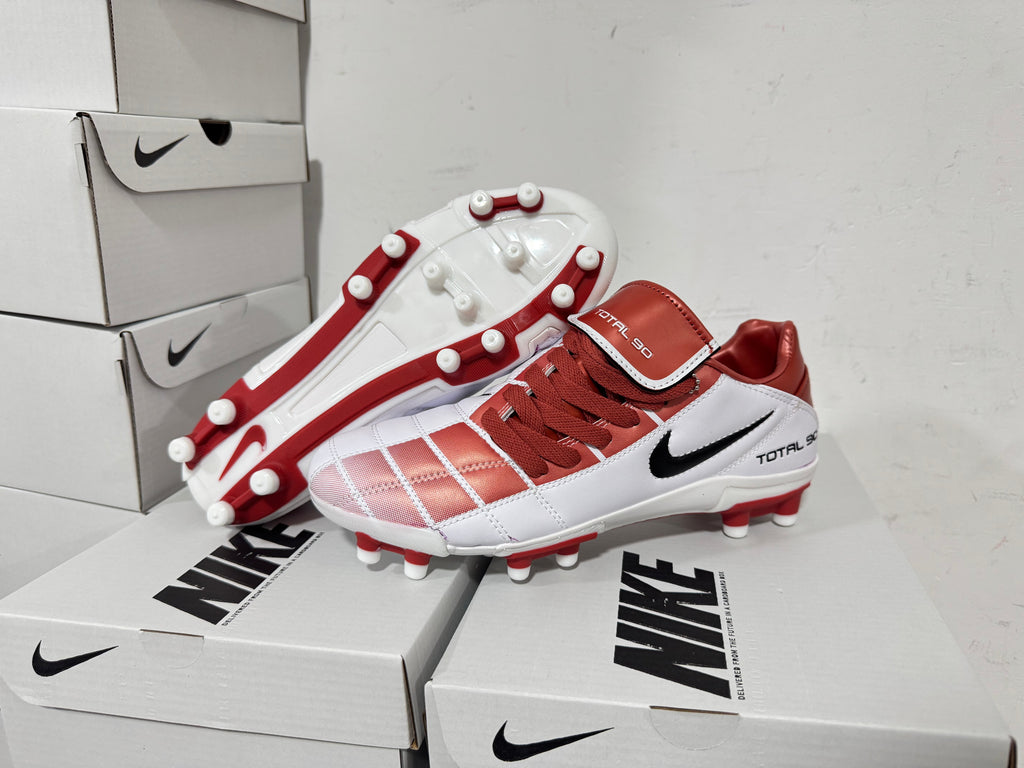 A icônica Nike Total 90 está de volta em grande estilo. Nesta edição branca e vermelha, o modelo revive toda a energia dos anos 2000 com um visual nostálgico e agressivo, feito para quem quer presença em campo e um chute mortal.